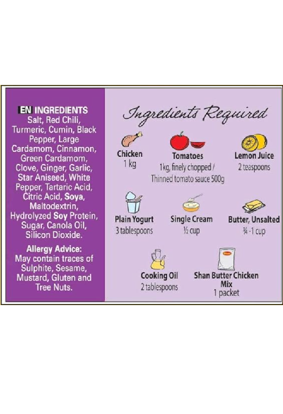 Shan Butter Chicken Mix helps you prepare the buttery and mouthwatering Chicken Curry for a wholesome meal time. Butter Chicken is a staple dish in Pakistani/Indian Cuisine and can be made with any kind of meat. Shan Butter Chicken recipe and seasoning mix helps you recreate an authentic and traditional dish loved by all.