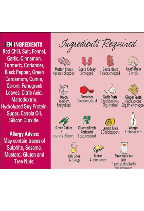 Barbecue meat is the most delicious of all but the ingredients vary from person to person and can be hit or miss. Shan Kat a Kat Mix has a perfect blend of rich and aromatic spices which brings you the exotic taste of authentic Kat a Kat.