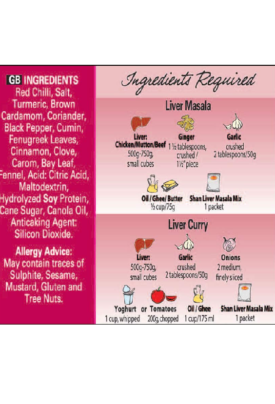 Shan Liver Masala Recipe and Seasoning Mix 1.76 oz (50g)