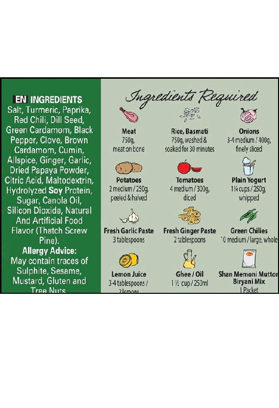 han Foods delivers the essence of traditional biryani with Shan Memoni Mutton Biryani Masala. Crafted with premium biryani masala powder and authentic spices, this mix enhances mutton pilaf with the rich heritage of Gujarati-style biryani. With Shan’s biryani mix, you enjoy a perfect balance of aroma and taste, bringing the celebrated flavors of India to your kitchen. This biryani spice mix features essential Indian seasonings, blended to capture the unique Memoni mutton biryani taste. Made with high-quality ingredients, Shan’s masala guarantees convenience and authenticity, free from artificial preservatives or colors. Whether for family meals or special occasions, this mix ensures delicious results every time. Designed for both novice and seasoned cooks, Shan’s biryani masala simplifies creating Gujarati-style biryani that’s wholesome and flavorful. Its versatile blend includes turmeric, black pepper, chili powder, and other key seasonings, making it ideal for mutton, lamb, or chicken biryani recipes. Shan Memoni Mutton Biryani Masala delivers a harmonious balance of spices, including garam masala and tandoori masala, for a rich, comforting flavor profile. Perfect for biryani and other dishes, this mix is suitable for various dietary preferences, including vegetarians, and is halal-certified. Packed in an airtight, resealable pouch to maintain freshness, this masala ensures every meal is a celebration of flavor. Beyond biryani, Shan’s spices and seasonings bring versatility to other recipes, making authentic Indian cooking effortless and flavorful. Embrace the rich traditions of Indian spices with Shan Memoni Mutton Biryani Masala and transform your meals into unforgettable culinary experiences. Crafted to the highest standards, this biryani masala powder brings the heritage of Shan masala into every dish.