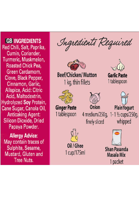 Shan Pasanda Masala Recipe and Seasoning Mix - 1.76 oz (50g)