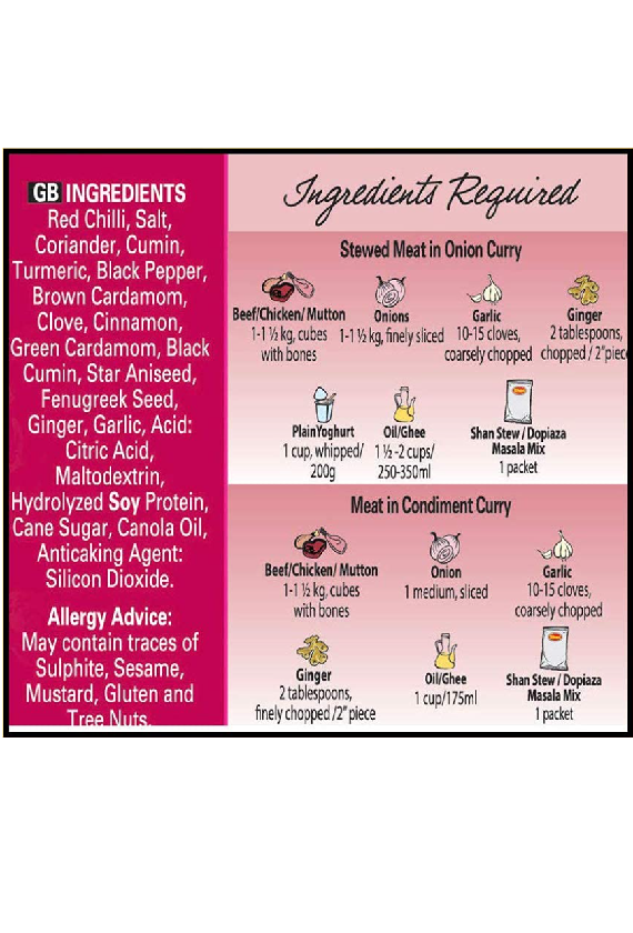 Shan Stew/Dopiaza Recipe and Seasoning Mix - 1.76 oz (50g)